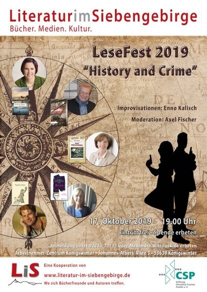Das Motto des LeseFests 2019 „History and crime“ bedeutete keineswegs, dass nur Geschichten aus dem Siebengebirge auf dem Programm standen. Trotzdem war unsere Region bevorzugt Schauplatz in den Kurzgeschichten und Romanen, die in diesem Jahr vorgestellt wurden.