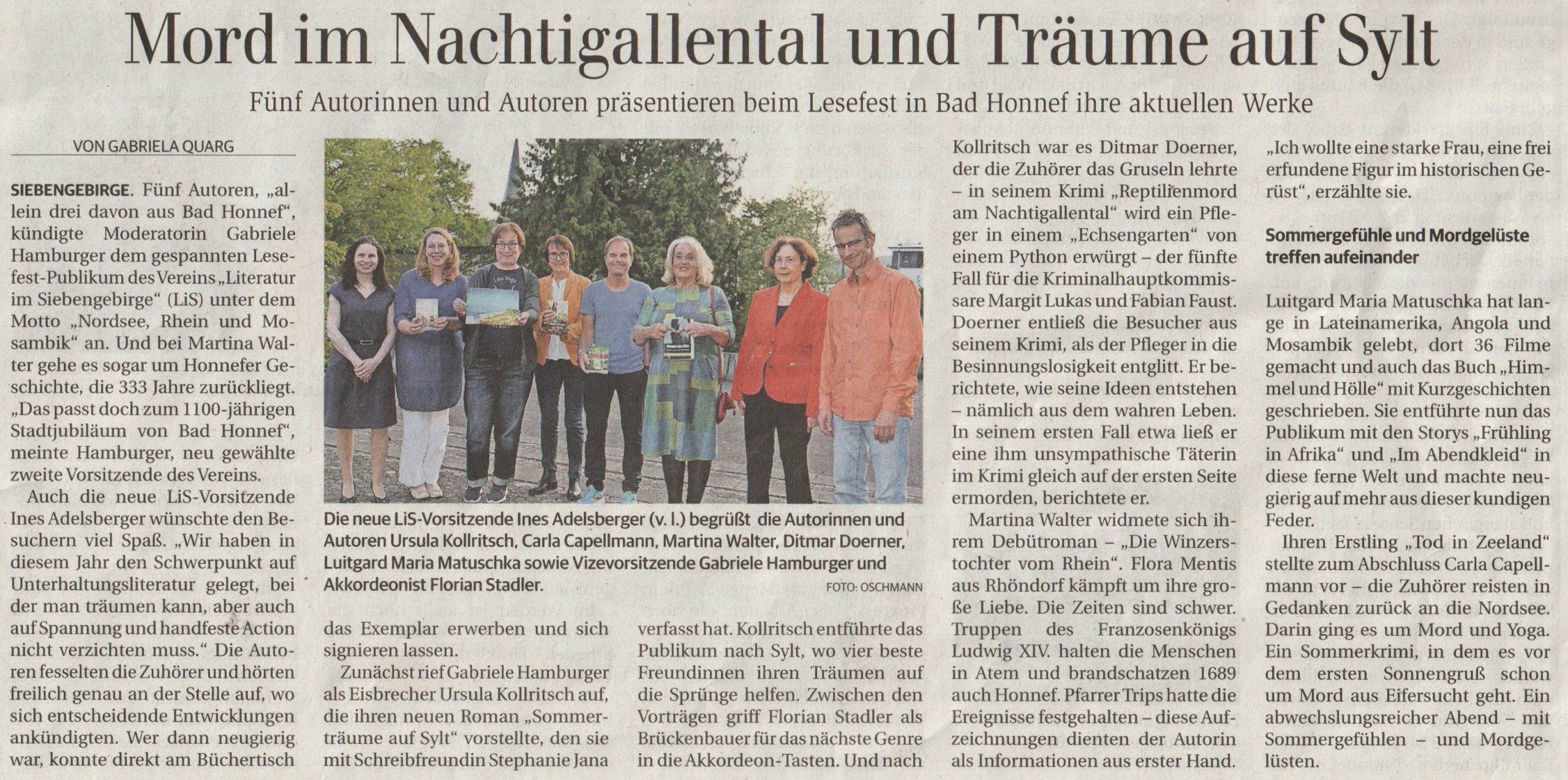 „Wir haben in diesem Jahr den Schwerpunkt auf Unterhaltungsliteratur gelegt, bei der man träumen kann, aber auch auf Spannung und handfeste action nicht verzichten muss“, beschrieb Silke Kornstädt, die Vorsitzende des Vereins „Literatur im Siebengebirge“, knapp das, was das LiS-LeseFest 2022 bot.